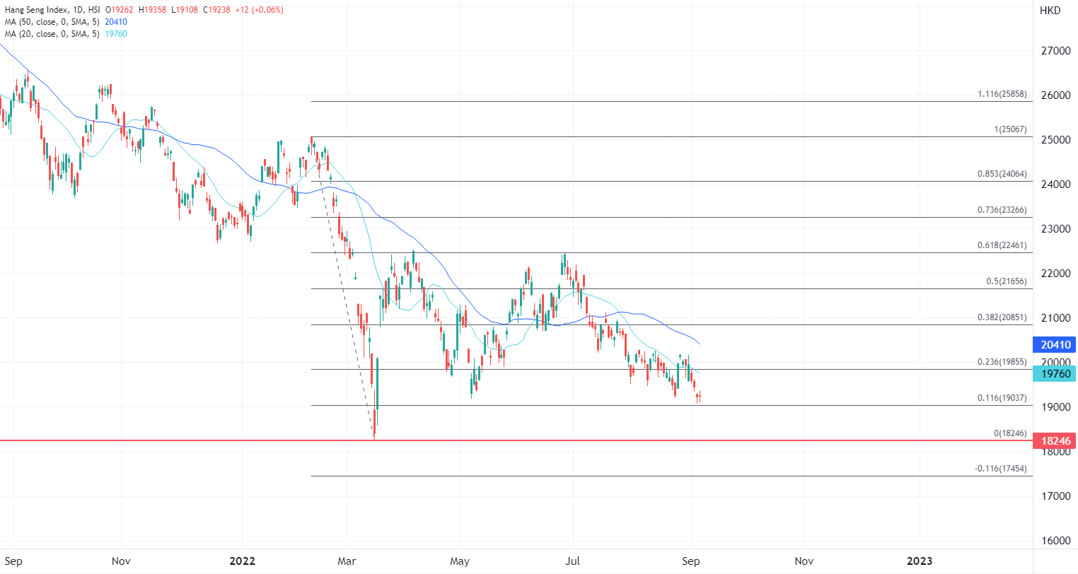 ATFX港股:恒指仍在底部探寻,沽空压力或推低至19000下方 ATFX港股:昨日人民银行突降外汇存款准备金率2个百分点,传递稳定回落信心的信号,内地股市先跌后回升,港股今早高开但低走,午后轻微上涨近0.1%,科技指数微升逾0.2%,金融分类指数升逾0.3%。 蓝筹股个别发展,科技股普跌,阿里巴巴(9988.HK)和美团(3690.HK