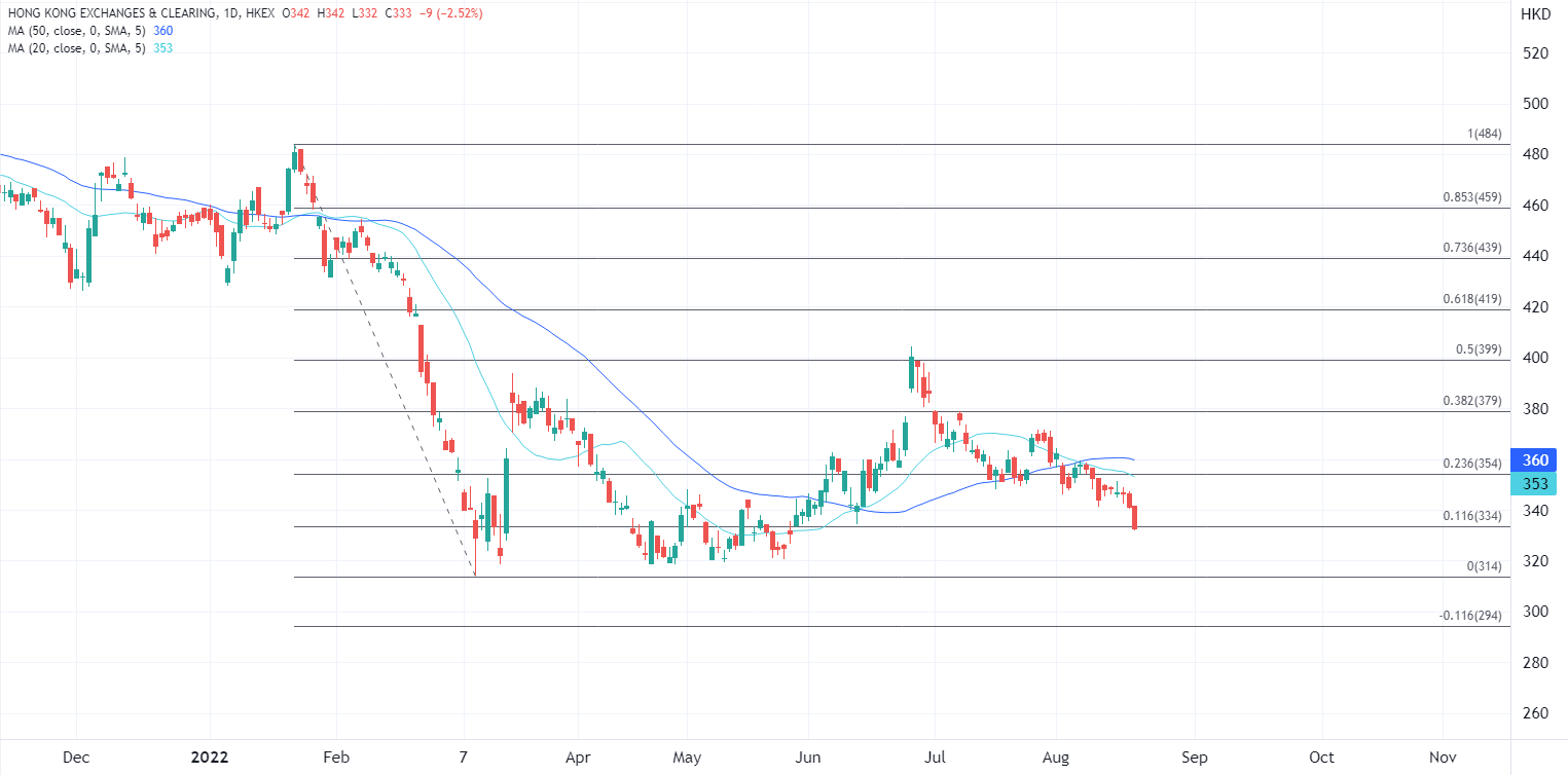 ATFX港股:港交所中期纯利跌27%,但两大利好值得展望 ATFX港股:港交所(0388.HK)周三公布截至6月底中期业绩,二季度营收和净利润环比均有所下滑,处于近6个季度的低点,绩后股价跟随向下跌1%触及两个月最低点,周四股价延续调整。 二季度主营收入同比跌4%,股东应占净利润21.68亿港元,同比下滑22%。上半年净利润同比