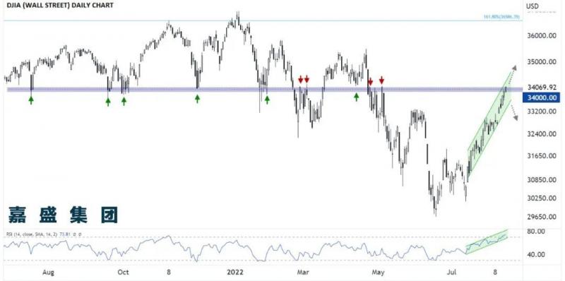 道指本周稳稳开局,今天斩获更多涨幅。 股指周二早盘反弹的直接原因是美国消费者。看到红皮书每周零售销售年率稳健上涨11.6%,以及沃尔玛和家得宝盈利分别劲增5%和4%,交易者即便面对挥之不去的通胀压力,也更加相信经济增长的基础良性。 此文发稿时,道指正在测试可以说是过去一年里最重