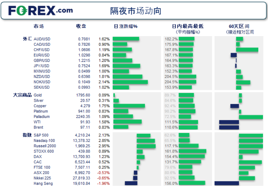 隔夜市场波动 美国通胀率11个月中首度低于预期,市场因此降低对美联储下次会议加息75个基点的预期。 7月CI月率持平,低于上涨0.2%的预期值,也低于6月的1.3%。核心CI月率上涨0.3%,低于0.5%的预期值和0.7%的前值。 美元兑所有主要货币与商品货币悉数走弱。商品货币方面,澳元和纽元为时段最强
