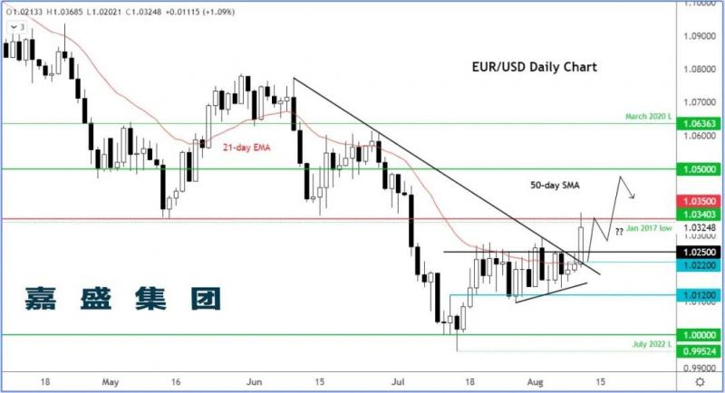 市场oji 隔夜回顾 美国7月通胀意外放缓 美国7月CI年率提升8.5%,增幅低于预期的8.7%,较6月的提升9.1%大幅回落。7月CI月率持平,增速同样慢于预期的0.2%,也较前值1.2%大幅回落。 市场影响:打压美元,助涨美股 点评:同时发布的核心CI月增0.3%,年增5.9%,同样较预期平缓。物价数据的意外降速令美