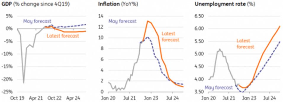 市场oji 隔夜回顾 英国央行加息至08年来最高水平 英国央行加息50个基点,将政策利率从1.25%提高至1.75%,此次加息幅度创英国1995年来的最大纪录,基准利率水平则来到2008年来最高。 市场影响:实质利空英镑 点评:英银陷入了典型的“两难”前景。一方面,英国央行预计4季度通胀将“略高于13%”,但也预