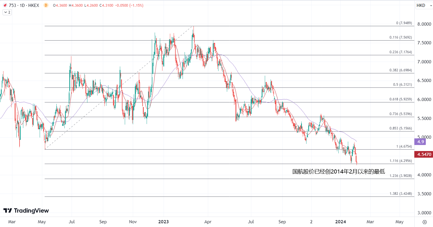 ATFX港股:各大航司发布业绩预告,2023年依然亏多盈少 ATFX港股:1月底,国内主要航司均披露了2023年业绩预告,7家A股上市航司中,有三家扭亏为盈,四家仍为亏损。中国国航(00753)、南方航空(01055)、东方航空(00670)发布业绩亏损预告,今早股价多数跟随下跌逾1%。春秋航空与海航则预计,2023年业绩将扭亏为盈。 ▲A