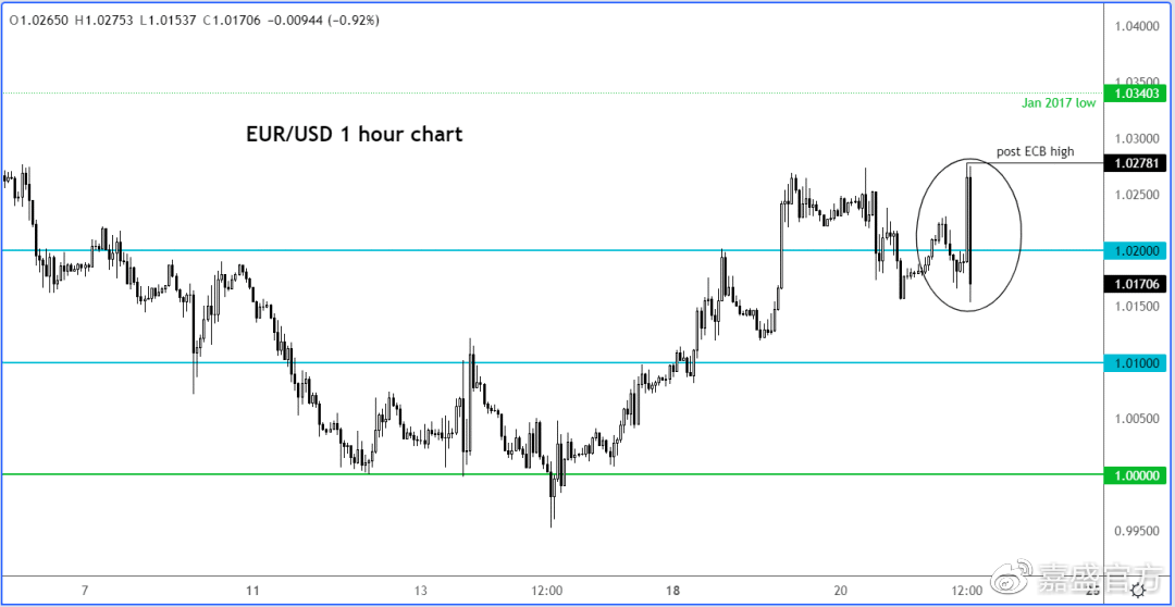 我们之前说过,市场很不确定欧洲央行是加息25个基点还是50个基点。也就是说,央行决议可能致使欧元暴涨暴跌。 欧洲央行周四宣布加息50个基点并推出一种新的工具,应对“无端、无序的市场变化”。欧元随后飚升,但在新闻发布会期间将涨幅回吐殆荆 欧洲央行曾暗示,进一步正常化利率“将符合