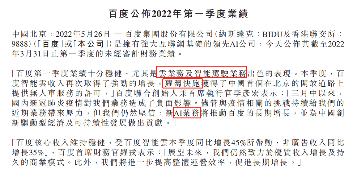 ATFX:2022百度世界大会,无人车RT6和开悟2.0是最大亮点 今日9:00~11:30,百度集团线上直播了主题为“AI深耕,万物生长”的百度世界大会,以主持人+项目负责人+3D视频的方式,介绍并展出了百度科技生态内的多项前沿产品。以下对直播内容做简要陈述。 ▲ATFX供图 首先是智能驾驶领域。萝卜快跑订单量已超百万,成