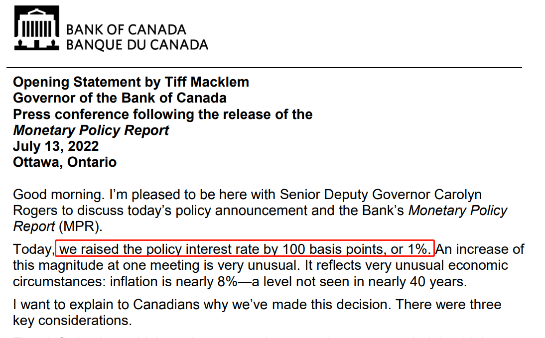 ATFX:加拿大央行加息100基点,UDCAD创20月新高 当地时间13日,加拿大央行宣布将基准利率提高100基点至2.5%,并称,如此高的单次加息幅度并不常见,目的是抑制40多年来最严重的高通胀问题(5月份CI最新值7.7%)。 ▲ATFX供图 加拿大央行的长期通胀目标为2%,其它国家央行的通胀目标也一样。由于能源价格和农产