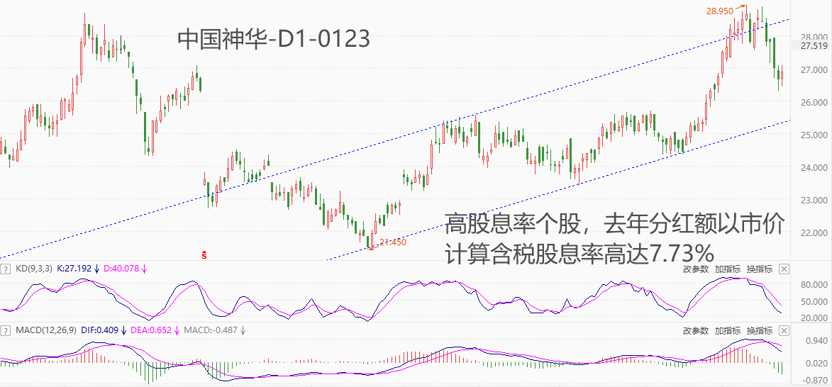 ATFX港股:中国神华年内收阳,高股息率致其具有较强的抗跌性 ATFX港股:高股息策略已经成为大盘疲弱态势下的主流选择。煤炭板块以其稳定且广泛的产品需求、企业自身强大的现金流,成为高股息优质个股的集中地。中国神华总市值5345亿元,位居煤炭板块首位。2023年分红方案为10派25.5元,以今日最新价33元计算,含税股息