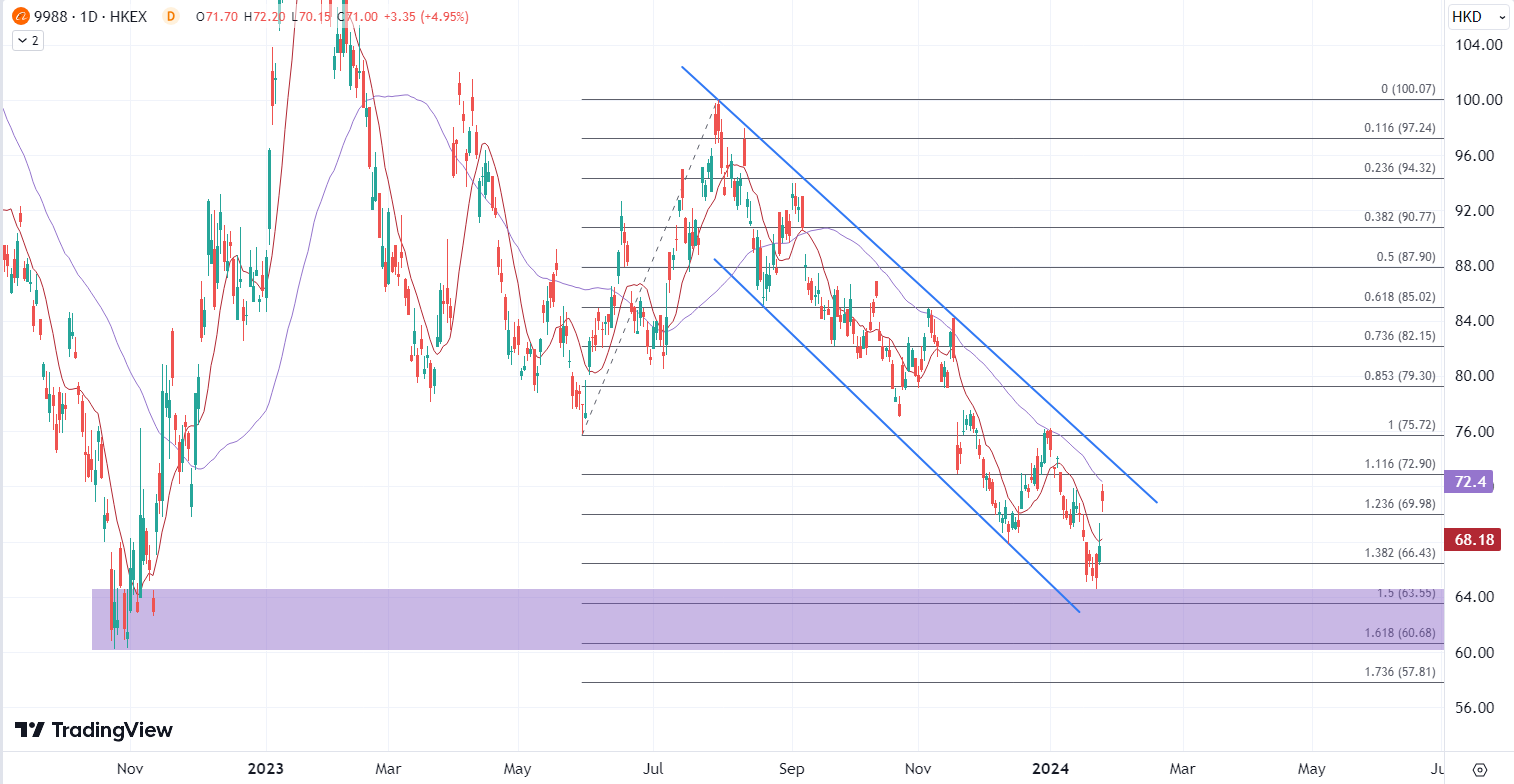 ATFX港股:获马云大幅增持,阿里巴巴突发利好 ATFX港股:今日港股继续在科技股的带动下尝试反弹,其中阿里巴巴为盘中主要的带动主力。消息面上,马云据报上季增持阿里港股和美股,消息在隔夜已经造好阿里美股,盘前一度升逾7%,今日继续在港股早盘撑市。 《纽约时报》引述消息指,马云上个季度一直逆市增持阿里巴