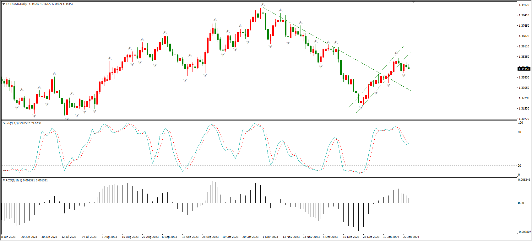 ATFX汇市:加拿大央行利率决议来袭,按兵不动概率较高 ATFX汇市:加拿大的宏观经济表现疲弱,基准利率却太高。2023年三季度,加拿大GD增速年率仅为0.47%,连续两个季度下降,已经跌至1%一下,基本维持原地踏步的状态。当前的基准利率为5%,远高于GD增速,对宏观经济复苏有抑制作用。今日22:45,加拿大央行将公布1月