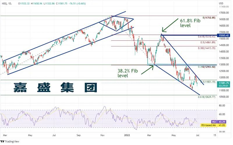 纳斯达克100指数有没有可能反弹至15265?该科技股密集的股指在2021年11月22日创下历史高点16764.86,此后最低跌至11037.21,跌幅达到34%。在6月、二季度和上半年接近尾声之际,股指目前交投于11600。股市正在经历半个世纪跌幅最大的上半年。 但纳斯达克100指数下半年有没有反弹的机会?股指在今年一季度
