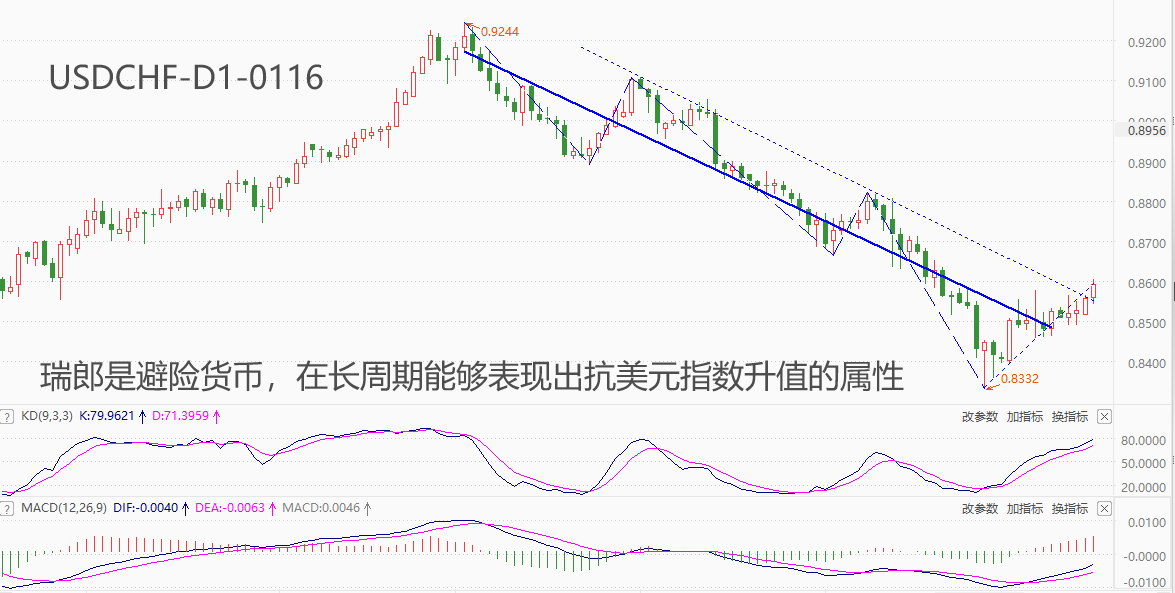ATFX汇市:美元指数延续反弹态势,UDCHF年内已涨超2% ATFX汇市:上周五和本周一,美元指数均以阳线收盘。今日盘中,美元指数呈中阳线形态,如果晚间的美国1月纽约联储制造业指数没有爆冷,美元指数今日以阳线收盘的概率极高。连续三日以阳线收盘,意味着美元指数的反弹态势尚未结束,降息预期并没有显著动摇美指多头持