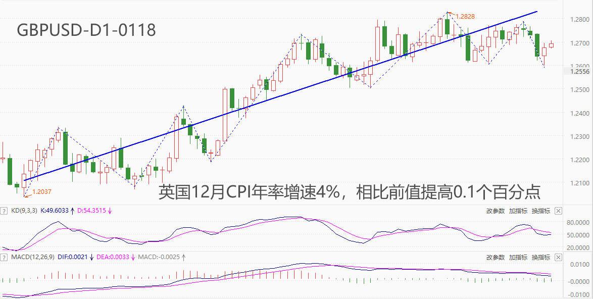 ATFX汇市:美指延续反弹态势,英镑成最佳抗跌货币 ATFX汇市:英镑占美元指数的比重超10%,仅次于欧元和日元,排名第三位。逻辑上讲,美元指数进入强势周期时,英镑大概率将出现贬值走势,亦即GUD下跌。然而,12月28日至今,美元指数累计反弹2.4%,欧元、日元均出现大幅贬值迹象,只有英镑仍保持窄幅震荡态势,表现出