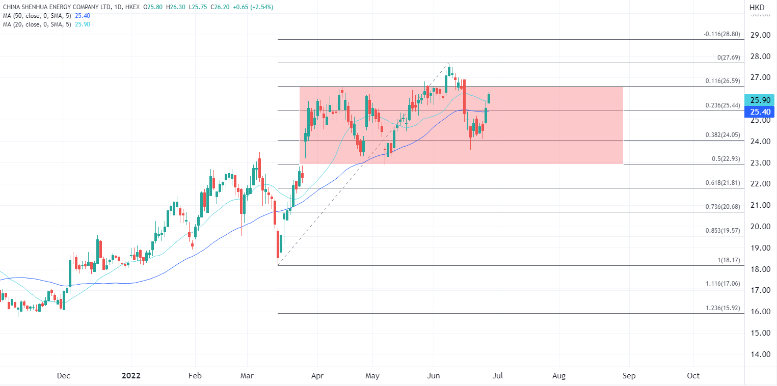 ATFX港股:煤炭股逆市走强,领涨行情贯穿上半年行情尾声 近期部分资源股普遍下调,尤其黑色系资源价格调整,上周国内商品期货黑色系全线大跌,一度拖累原本强势的煤炭股出现震荡走低。 煤炭股上周跟随部分调整之后,本周继续走出上扬行情,对应的是全球燃料短缺下,亚洲煤炭价格被持续推高创历史新高,亚洲燃煤价