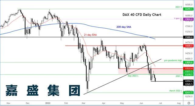 隔夜市场波动/上周的前期波动 欧洲股指调头向下。系列I报告弱于预期,其中法国制造业I从54.6下跌至51,距离萎缩咫尺之遥。 今天重点关注德国IFO报告,观察其是否确认I报告的疲弱之势。 又有美联储官员呼吁7月加息75个基点,全球经济衰退的忧虑因此进一步升温。 铜价