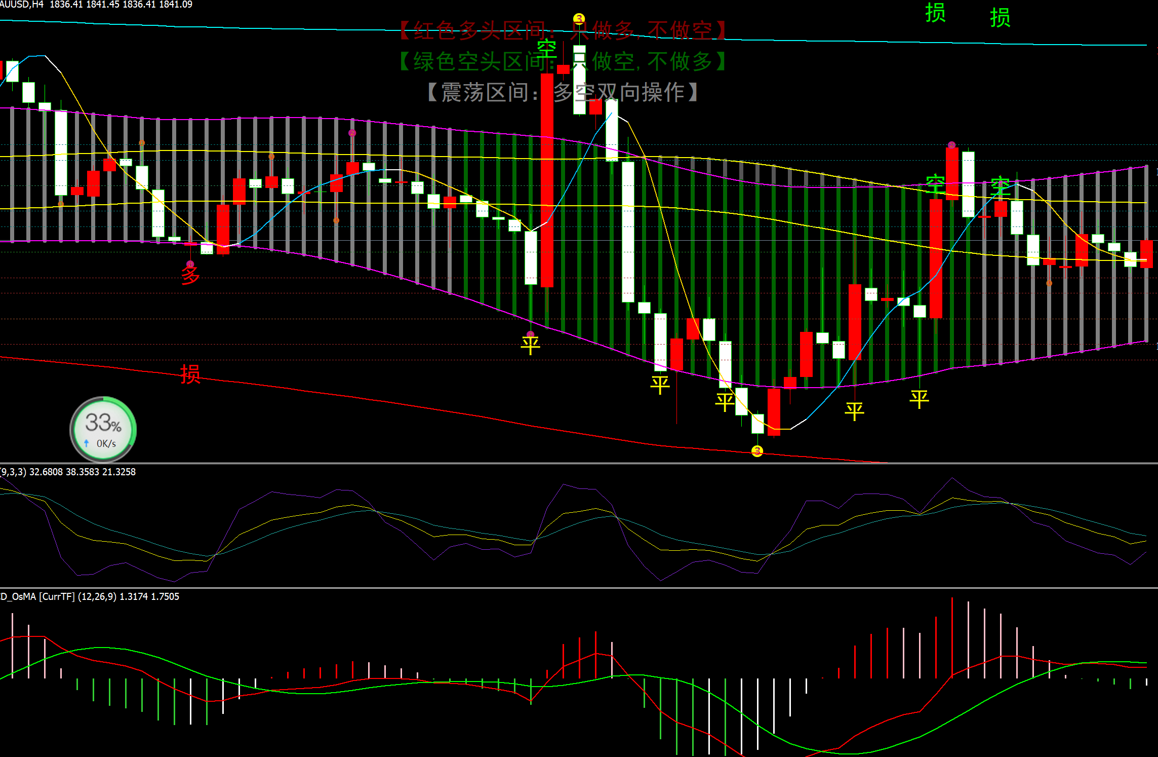 昨天金价受休市影响,全天波动12块,盘中最高1846,最低1834,日图最终以一根小十字报收于1838.3,符合预期。 从当前盘面来看,日图至1879到1805一线完成了由上线到下线的过程,而当下至1805反弹以后,最高上冲到二线压制回落形成两阳跟中阴,随后就是十字,对于这种组合,从横向来看是日图的反弹并没有完全结束,一