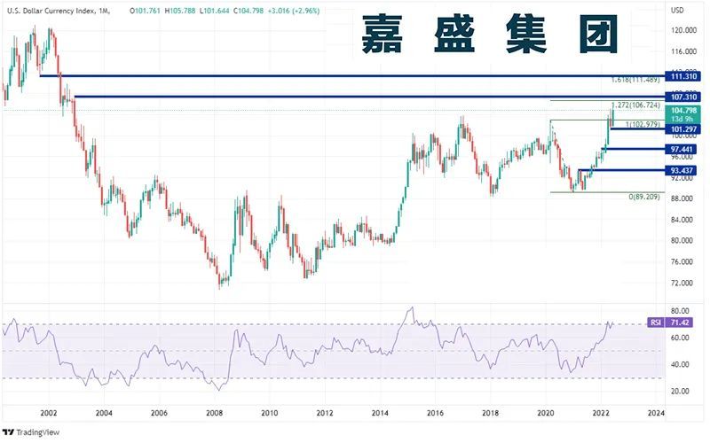 周一(6月20日)亚市盘初,美元指数现报104.66;上周五美元指数上涨近1%;美元兑日元上涨超2%,日本央行逆紧缩潮流坚持其超宽松立场,加剧了外汇市场的震荡,上周的一系列加息行动冲击汇市,导致波动性急升。 上周多国央行进行了数十年来幅度最大的加息,包括美联储上周三加息75个基点,为1994年以来幅度最大的一次,且