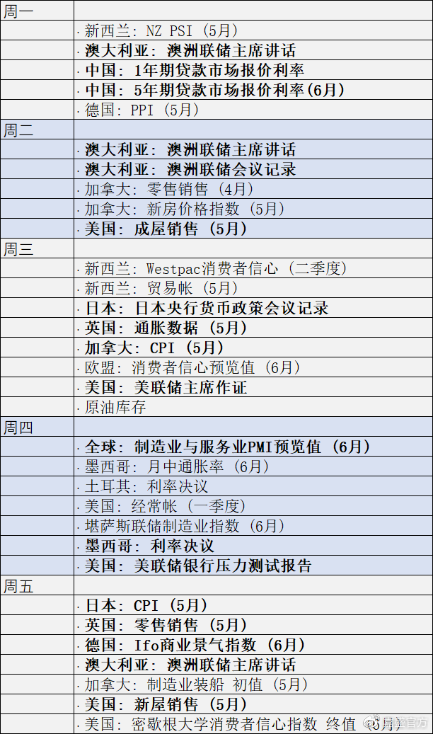 周末无重大消息,上周美联储加息如预期完成,美元经过宽幅盘中洗盘再次企稳上行,毕竟567是一个连续加息月6月虽然符合预期,但是7月后还有加息,而且缩表规模也是增大,英国央行和欧洲央行也是开启加息周期,无疑抗通胀和限制资本外流成市场主旋律,那么美联储继续7月加息以后会有所收敛那么就是说现在美元还是震荡多头