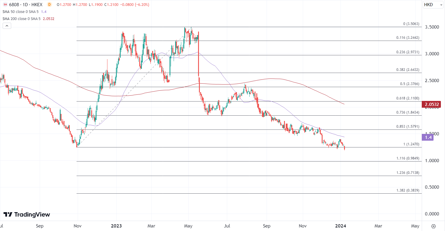 ATFX港股:消费股延续上周弱势,春节倍增行情仍可期? ATFX港股:周一港股延续了上周开具的欠佳走势,各大板块中消费股普遍疲惫。 高鑫零售(06808.HK)、维他奶(00345.HK)及九毛九(09922.HK)跌逾5%。李宁(02331.HK)跌4.5%;安踏体育(2020.HK跌近0.8%)。蒙牛(02319.HK)、中国飞鹤(06186.HK)、青啤(00168.HK)、统一企