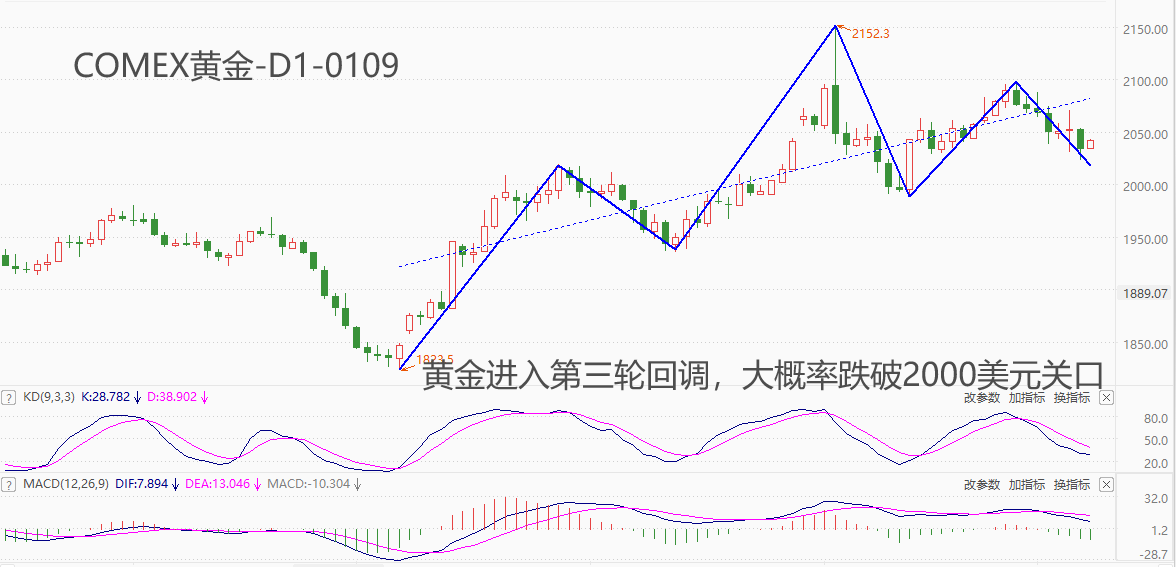 ATFX期市:黄金本轮回调可能再破2000美元整数关口 ATFX期市:2023年12月28日至今已经有八个交易日,黄金从2089.4美元下跌至2040.1美元,跌幅2.36%,期间最低触及2022.7美元。黄金的本轮中期上涨波段已经出现过两次显著回调:第一次是10月30日至11月13日,最低触及1935.6美元;第二次是12月4日至12月12日,最低触及1991.