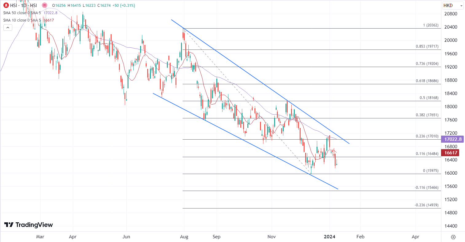 ATFX港股:恒指五连跌后辗转反弹,北水抛售下可能再度破底 ATFX港股:港股五连跌后,今早小幅高开曾升逾百点,一度高见16,414点,半日升51点或0.3%,报16,275点;国指升2点或0.04%,报5,483点;恒生科技指数跌8点或0.2%,报3,476点。 隔夜美股科技股大涨,今日恒指科指今早曾反弹1.6%,不过随后走低。腾讯(00700)