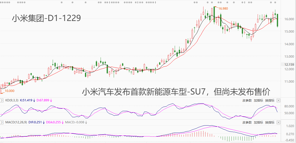 ATFX港股:小米发布U7新能源车型,尚未发布售价,股价高位回落 昨日下午2:00,小米集团发布首款小米新能源汽车——U7。发布会上,雷军对U7的电机、平台架构、自动驾驶等技术进行了全面介绍,但直至发布会结束都未透露售价。发布会期间,雷军提到“搭载同样电池包的车,均价都在40万以上,售价9.9万是不可能的,说14