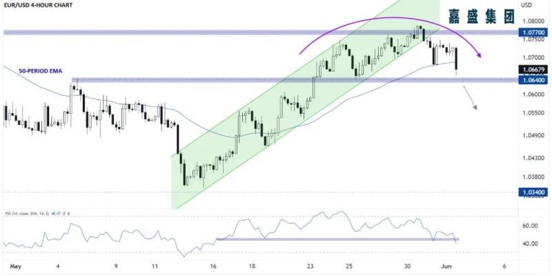 欧洲央行和美联储都有望在今年下半年加息,但最近的各种消息与事件表明,美国经济相对欧洲经济具备更加扎实的持续增长基矗 上周我们指出,欧元/美元这个全球交易最广泛货币对在短线上涨通道内走高,蓄势反击1.0770关键阻力区域。从下面的最新图表可以看出,欧元/美元确实反击前述区域,但多头力量不足,