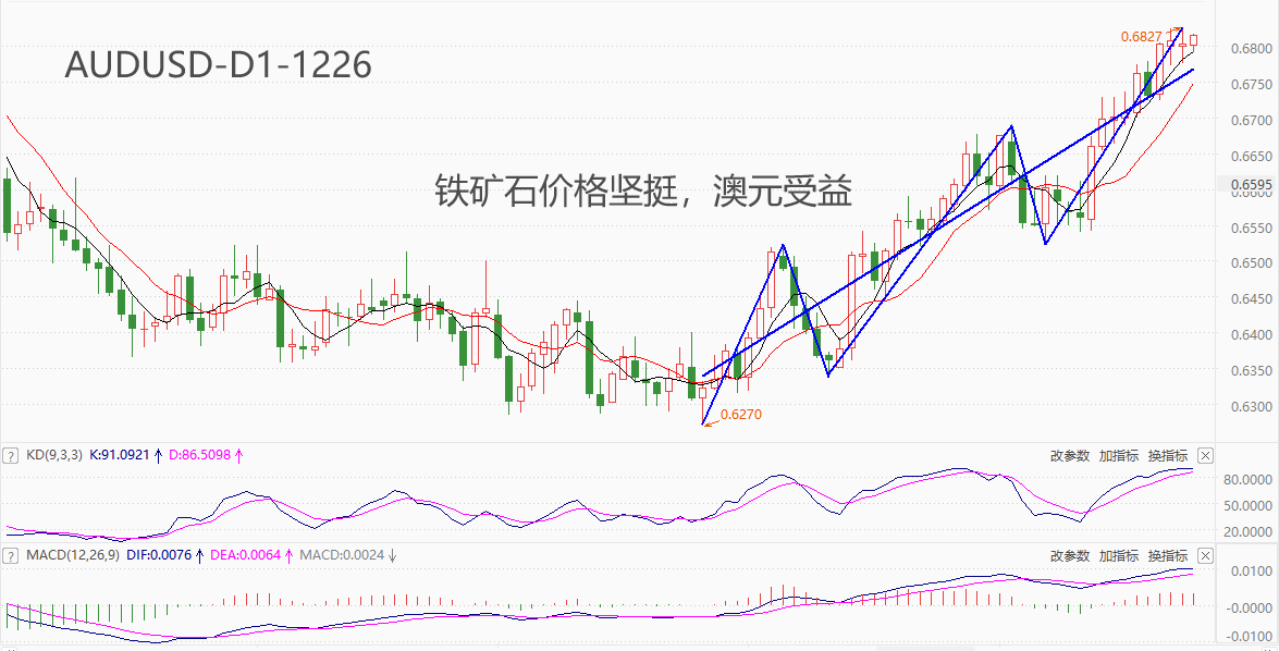 ATFX汇市:铁矿石价格进入强势周期,AUDUD受显著提振 ATFX汇市:2023年5月26日至今,铁矿石价格从612.5元/吨上涨至979.5元/吨,累计涨幅近60%,牛市特征显著。驱动本轮铁矿石价格上涨的因素并不清晰。逻辑上讲,北半球进入冬季,项目施工受影响,钢材需求应当有所减少,不利需求端,价格应当略显疲软。当前铁矿石价格