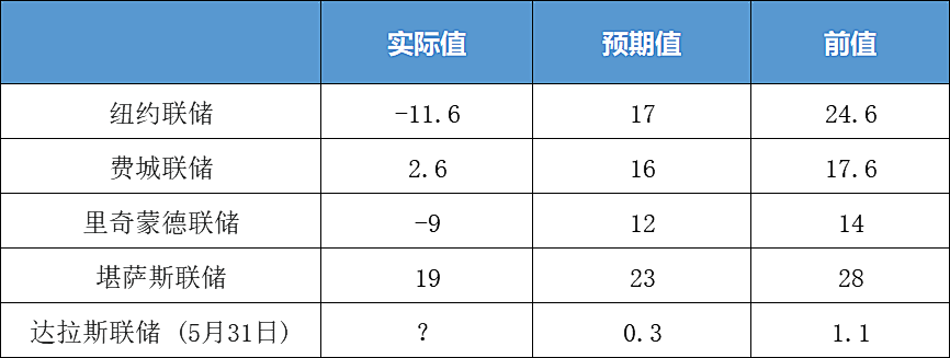制造业指数会继续下跌吗?这可能视乎油价是否居高不下甚或上涨。 美联储制造业指数展示全国各地每个月一般商业活动的水平。以下是各个美联储地区联储公布的5月制造业指数: 很多参与调查的企业都表示,目前依然处于供应链中断与成本上升的困境。纽约地区的装船下降速度创下疫情爆发初期以来之最