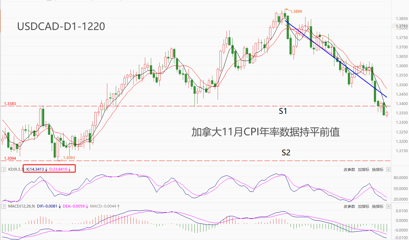 ATFX汇市:加拿大11月CI年率持平前值,UDCAD创近四个月来新低 ATFX汇市:11月19日,加拿大统计局发布通胀率数据,其中提到:11月CI年率3.1%,与前值持平,略高于预期值2.9%;11月CI月率0.1%,同样与前值持平,高于预期值-0.1%。受此消息影响,UDCAD昨日下跌0.49%,今日延续跌势,盘中最低触及1.3320,创出8月4日以