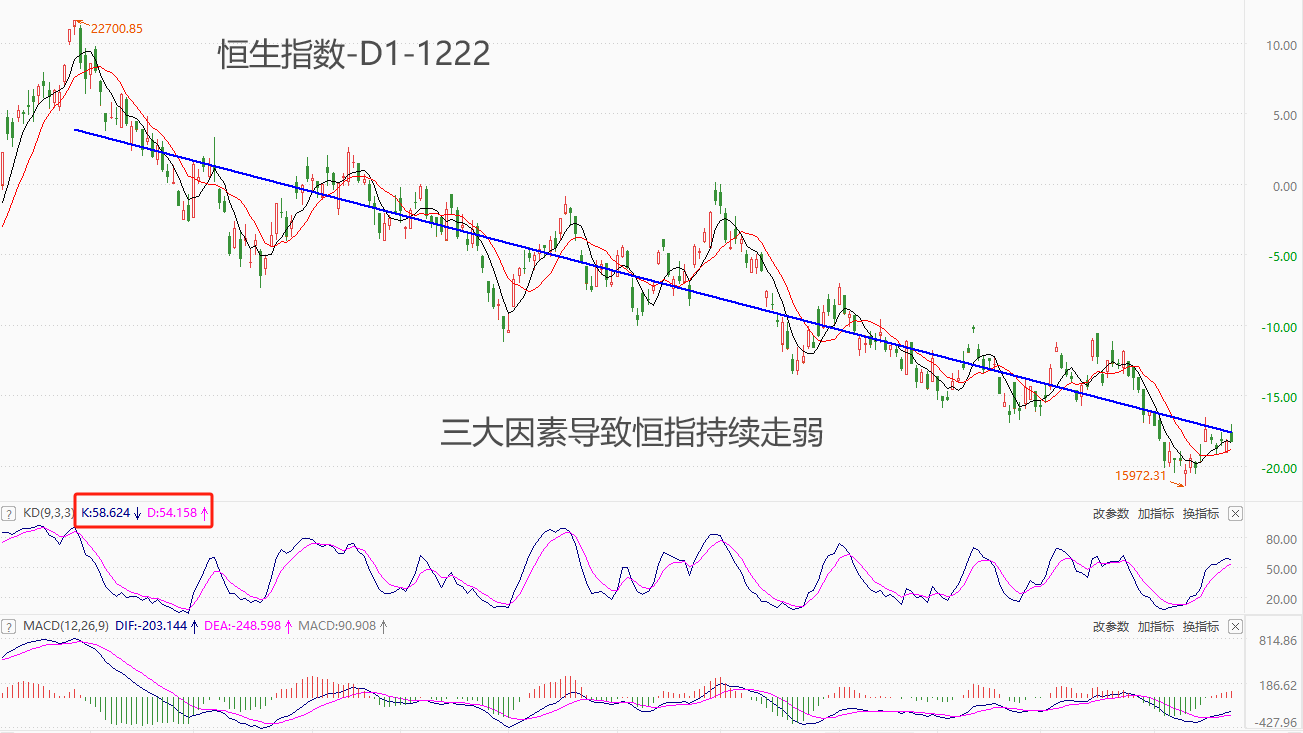 ATFX港股:恒指势将连跌四年,跨年之际能否看到乐观? ATFX港股:今年港股及国企指数以接近20%的跌幅,成为全球投资市场表现垫底的地区,期间一路下探,多次刷新年内低点,最低创下去年11月以来的最低位,并一度跌破16000点心里关口,今年势将连续第四年录得下跌。 ▲ATFX图 近两周港股进一步在16000关口上下僵
