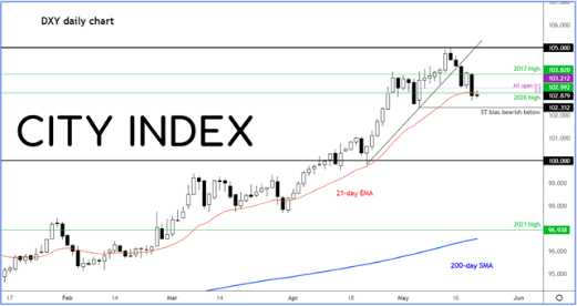 在拉加德奠定欧洲央行接下来加息基础的助力下,欧元/美元延续近期涨势。 欧洲央行行长拉加德(ChritiLagard)周末发布博文,谈论对欧元区货币政策的看法。拉加德通常立场偏温和,但当时却在文章中指出,通胀前景明显上升,预计资产购买计划下的净购买最早在三季度初即结束(将在央行6月会议宣布吗?);如