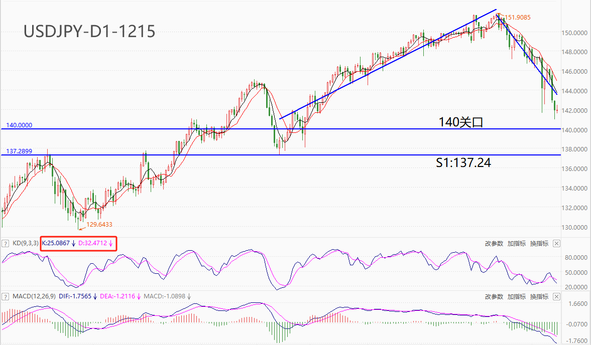 ATFX汇市:伴随美指进入弱势周期,UDJY正向下试探140关口 12月美联储利率决议宣布暂停加息,鲍威尔表示“降息已开始进入视野”,市场人士对于降息的预期持续升温,美元指数从10月份开始进入弱势周期,至本周时,最低点已经突破102重要关口。受美指弱势周期影响,UDJY启动中期下跌走势。11月14日至今,UDJY累计跌