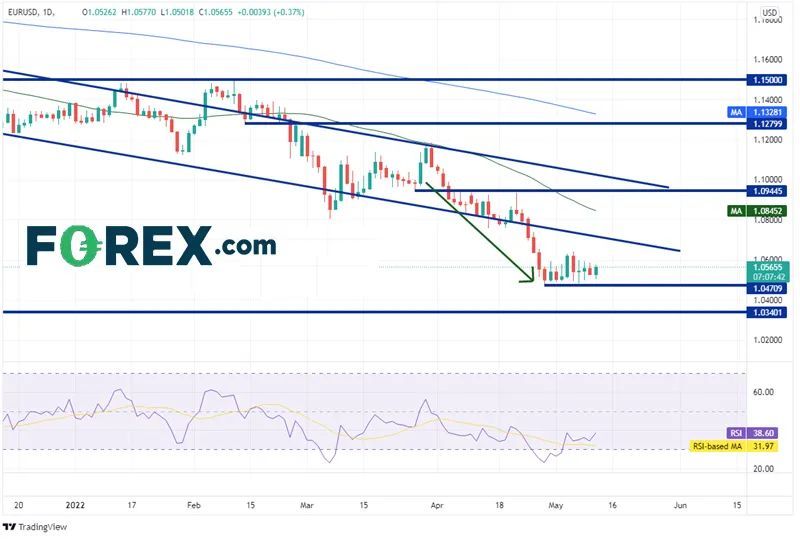 欧洲将要加息的暗示有望提振欧元/美元。 最近有多位欧洲央行官员提到提前加息的可能性,其中包括央行行长拉加德。提醒读者,欧元区4月通胀率为7.5%,而央行的目标为2%。欧洲央行的成员以前对加息的态度一直慎而又慎,担心俄乌战争对家庭收入的影响。但现在通胀高企,央行似乎没有多少别的选择。
