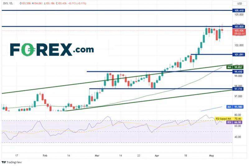 【美元指数】 美元指数方面,上周五美元指数总体呈现震荡的走势,当日价格最低于103.157位置,最高上涨至104.048位置,收盘于103.65位置。回顾上周五美元指数表现,早间开盘后价格短线进行上涨,随后再次修正,随后晚间也是再度拉升,日线方面价格阳线收尾,目前总体看美指依旧维持强势的状态,操作上我们还需逢低布