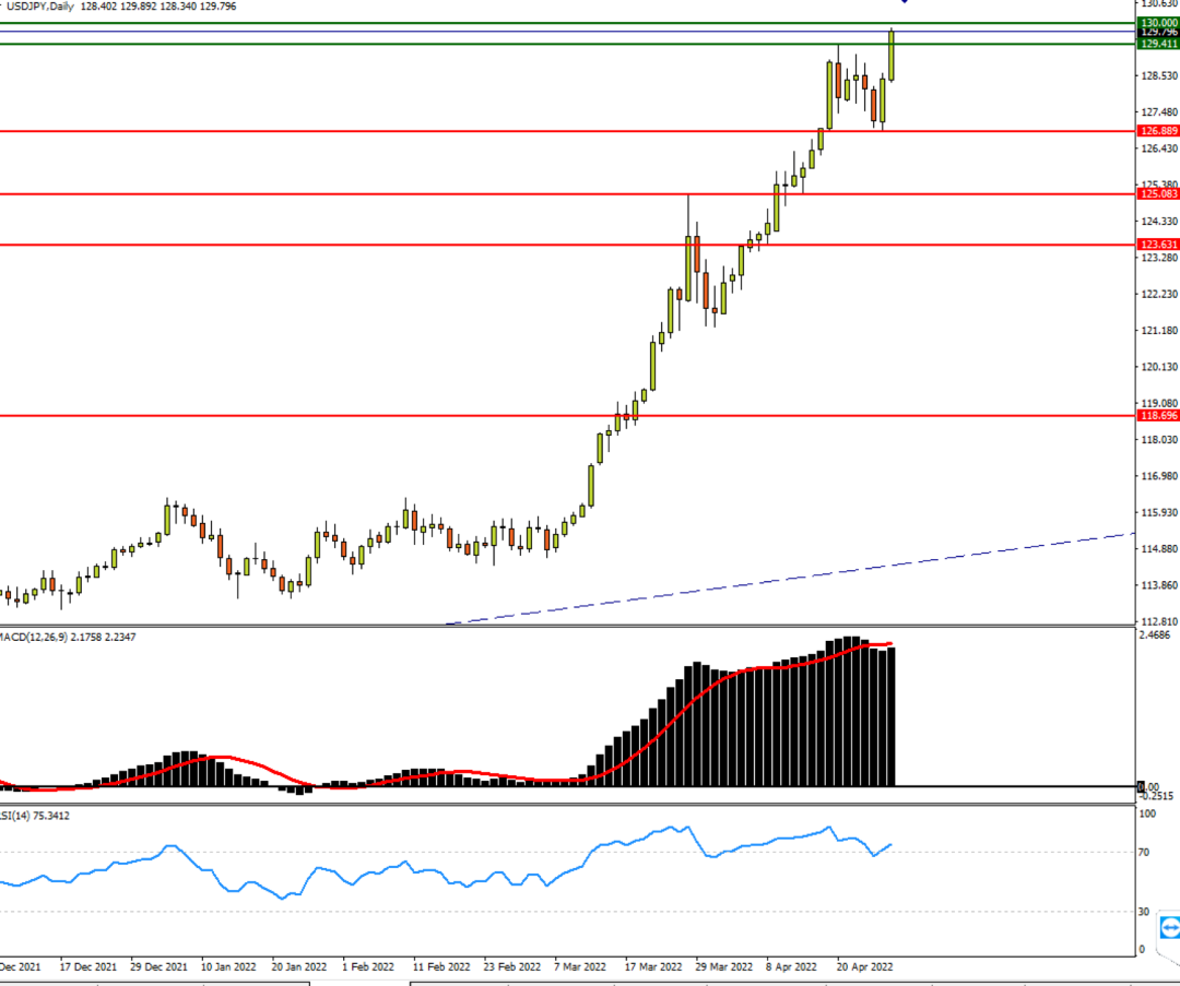 周四(4月28日)美元指数刷新2002年12月以来高点至103.94;在日本央行加倍承诺保持宽松政策后,日元跌至2002年以来最低,而欧元触及五年最低,受累于对欧元区增长的担忧。现货黄金小幅上涨,收报1894.27美元/盎司,稍早一度创近10周新低,因美元飙升给贵金属带来压力。美油尾盘涨超3%,欧盟禁止从俄罗斯进口石油的可能性似