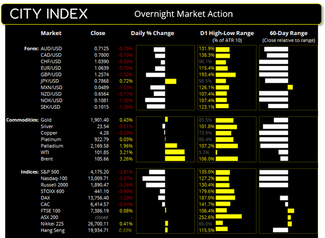 纳指昨天暴跌近4%,跌幅为2020年9月以来之最,但黄金守住关键支撑位且收复1900整数关口。 美国现货市场周二收盘情况: ·道指涨565点,涨幅0.08%,收于7,386.19 ·标普500涨120.92点,涨幅2.51%,收于34,058.75 ·纳斯达克100指数跌523.511点,跌幅1.32%,收于13,009.71 亚洲期