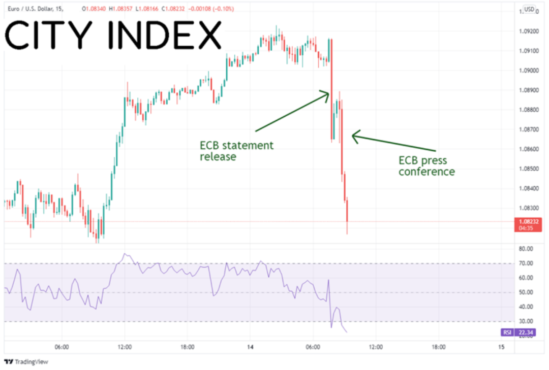 周四美盘前,欧洲央行公布利率决议,维持三大关键利率不变,符合市场预期。欧元兑美元短线跳水65点,并在拉加德讲话后持续走低。截至发稿,欧元兑美元再破前低1.0767,较欧洲央行利率决议公布以来的高点回落逾150点,创2020年4月以来新低。欧元兑英镑日内跌超0.50%。 美元指数一路上扬,重返100大关后涨势不止,日内