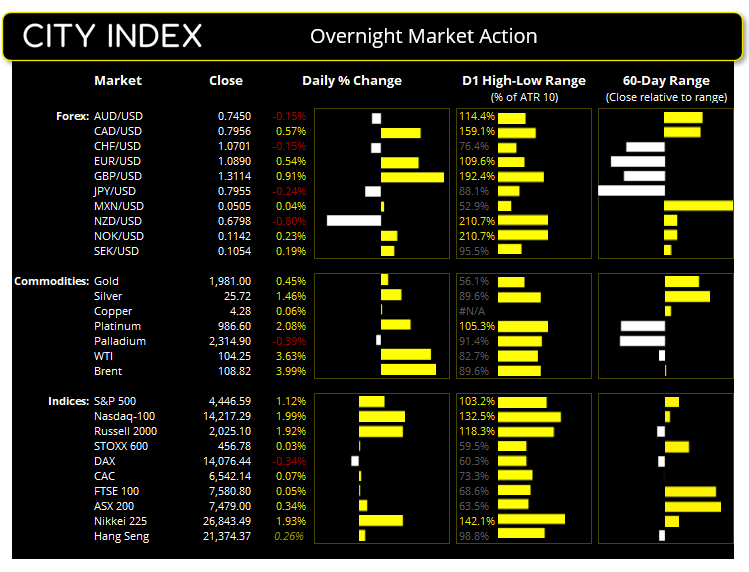 无论看哪种通胀指标都很难得出通胀今后不会继续上涨、大宗商品不会延续反弹走势的结论。 美国现货市场周三收盘情况: ·道指涨344.23点,跌幅1.01%,收于34,564.59 ·标普500涨49.14点,涨幅2.51%,收于34,058.75 ·纳斯达克100指数涨277.05点,涨幅1.99%,收于14,217.29