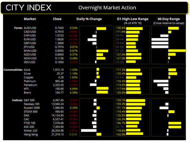 快速浏览数据后我们发现通胀或尚未触顶,但即使已经触顶,回落可能也是一个漫长的过程。 美国现货市场周二收盘情况: ·道指跌87.72点,跌幅0.26%,收于34220.36 ·标普500上涨15.08点,涨幅2.51%,收于34058.75 ·纳斯达克100指数跌49.965点,跌幅0.36%,收于13940.24 亚洲期