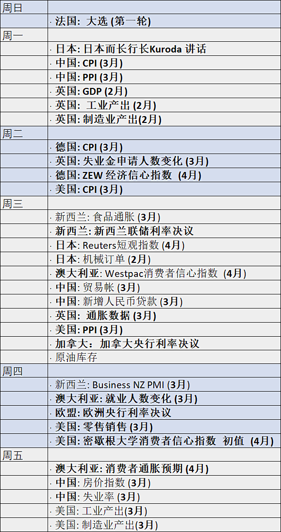 新西兰联储、加拿大央行和欧洲央行本周都将召开货币政策会议,可能造成市场震荡。 上周经济数据缺少亮点,市场因此相对平静,但本周将一改沉静面貌,央行会议和通胀数据唱主角。新西兰联储、加拿大央行和欧洲央行本周都将召开货币政策会议,大家都在关注哪家央行立场最强硬以及哪家央行将加息50个基点(