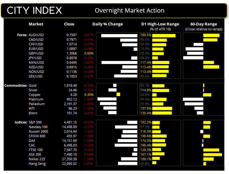 FOC会议记录重申了美联储极端强硬的立场,帮助美元在时段内称王。 美国现货市场周三收盘情况: ·道指跌144.67点,跌幅0.42%,收于34,496.51 ·标普500涨43.97点,涨幅2.51%,收于34,058.75 ·纳斯达克100指数跌321.754点,跌幅2.17%,收于14,498.89 亚洲期货市场: ·