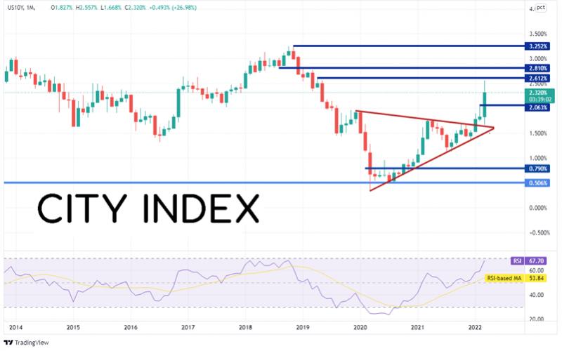 美元/日元和收益率之间的高度相关性,使得后者此前一直带动前者走高。 在美联储于3月16日召开FOC会议时,10年期美债收益率业已处于上涨中。但FOC在是次会议指出,当前的加息节奏适宜,且预计在接下来的会议上开始收缩资产负债表的规模。自那以后多名美联储官员异口同声地表态:加息50个基点的选项摆上桌面