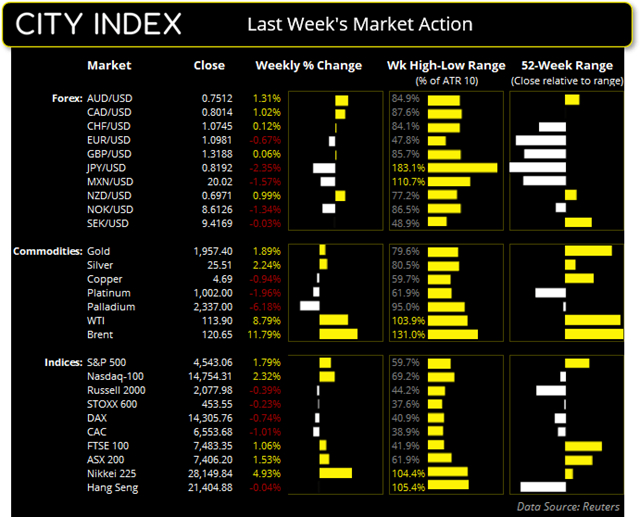 美元在3月份大部分时候横盘震荡,但整体趋势继续坚定看涨。 美国现货市场周五收盘情况: ·道指涨153.34点,涨幅0.44%,收于34,861.24 ·标普500涨22.9点,涨幅0.51%,收于4,543.06 ·纳斯达克100指数跌11.386点,跌幅0.08%,收于14,754.31 亚洲股指上周五收盘情况: