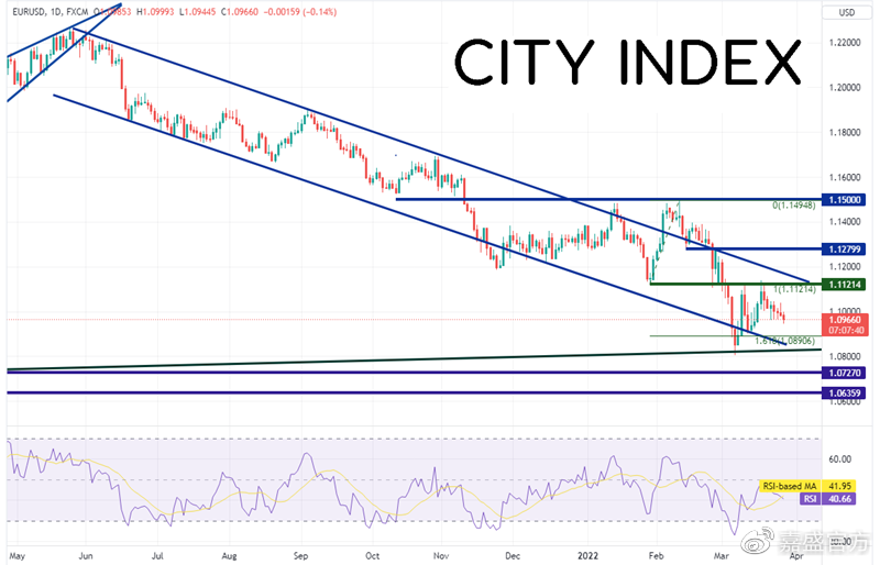 欧元区和美国本周将双双发布通胀数据,可能导致欧元/美元震荡。 欧元区本周将揭晓3月CI预览值,预期值为6.6%,高于2月的5.9%;剔除能源、酒精、食品与烟草的核心CI预览值的预期值为3.1%,高于2月2.7%。周初还有多名欧洲央行官员将要发表讲话,其中有央行行长拉加德和成员hiliLa(其最近曾表态,即