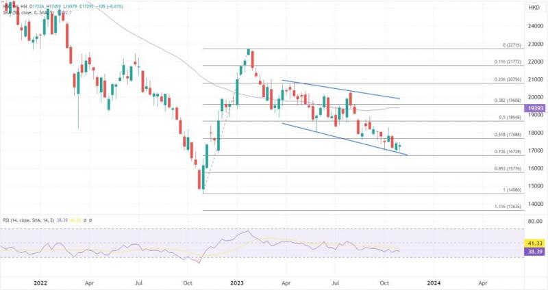 ATFX港股:恒指11月有机会整固并反弹? ATFX港股:在传统的股災月中,恒指再度收跌,10月累跌697点,已经是连挫三个月,进入11月份,市场在谨慎中带有期盼。 10月份,各大蓝筹股中,表现最佳的是为翰森制药(3692),全月累升38.3%;舜宇光学(2382)及石药集团(1093)紧随其后,分别累涨19.8%及19%。至于蓝筹10月输家