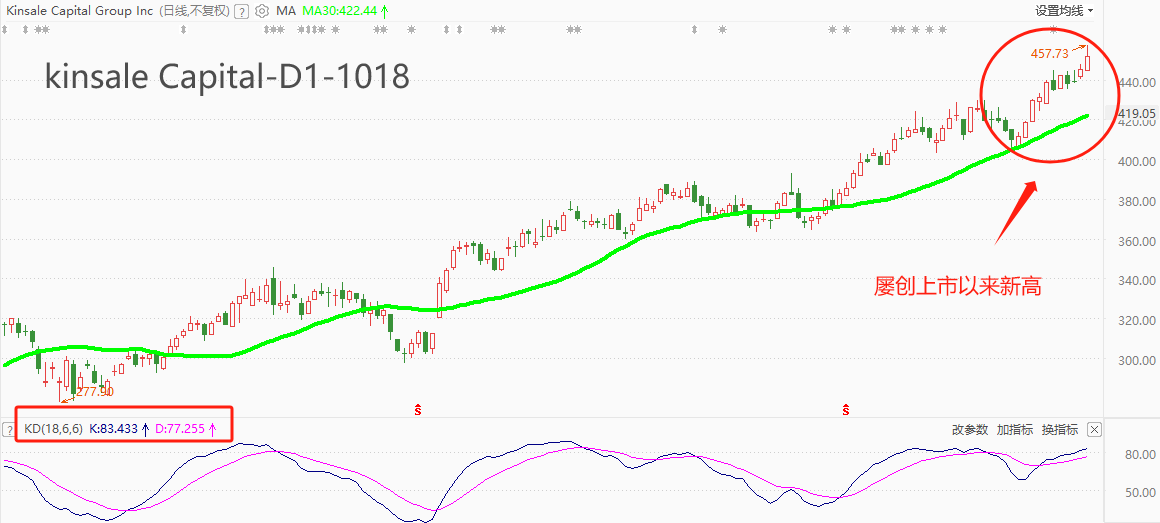 ATFX美股:KL股价屡创上市以来新高,上半年保费收入达7.958亿美元 ATFX美股:KialCaital是一家纽约证券交易所上市的保险类公司,代码KL,中文名称金赛尔集团,总市值104.7亿美元,昨日收盘价451.84美元,位居美股市场金融板块第12名。今年以来,KL股价保持稳健涨势,截止目前年内累计涨幅72.77%,远高于同期