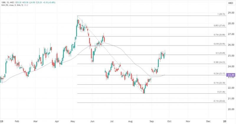 ATFX港股:煤炭价格淡季不跌反涨,煤炭股估值修复能否持续? ATFX港股:今日港股未能延续上一交易日强势出现回吐,在为数不多的逆市上涨板块中,煤炭股延续了上周的积极走势。中国神华(01088)股价小幅高开后一度录得逾三个月高位,下一关键阻力在26港元处。 ▲ATFX图 今年以来煤炭板块一度经历大幅调整,今年1