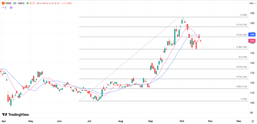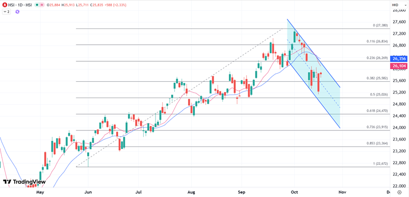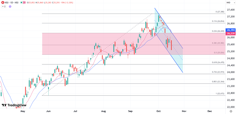 ATFX港股:本周呈现低位整理,周线两连跌后聚焦25000关口 ATFX:港股今早低开低走,恒指一度跌逾400点,回落至25500点水平。恒指中午收报25473,跌415点,午后初段续向下寻底;国指跌185点或2%,报9074点;科指跌188点或3.14%,报5814点。 科技股继续拖累大市表现,科技指数午后跌幅扩大至3.6%,阿里巴巴(09988)称