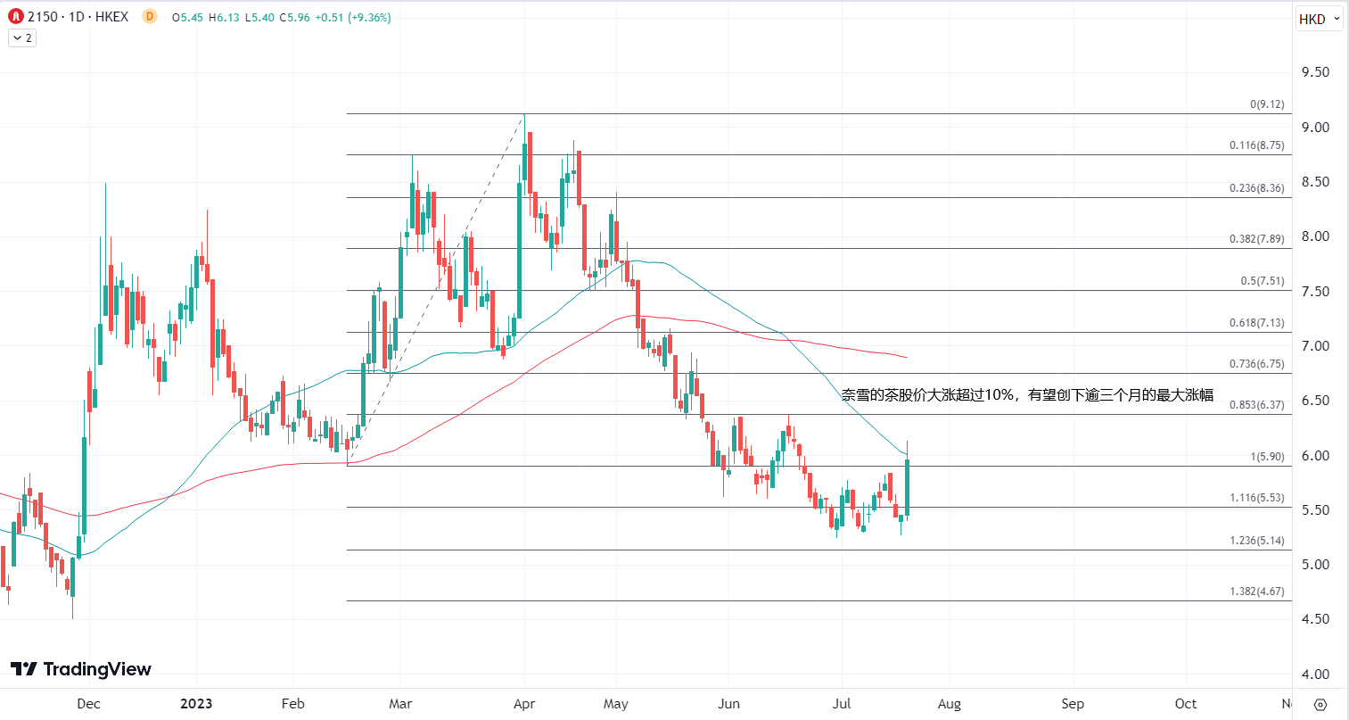 ATFX港股:奈雪的茶开放加盟,股价大涨超过一成 ATFX港股:奈雪的茶(2150.HK)午后大涨11%今日正式推出“合伙人计划”,股价盘中跟随大涨11%,报6.05港元,总市值约103亿港元。消息面上,奈雪的茶今日正式推出“合伙人计划”,加速市场拓展和品牌覆盖。 ▲ATFX图 截至今年7月,奈雪的茶已经在全国近100个城市