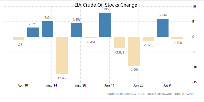 ATFX期市分析:隔夜黄金原油双双上涨,等待美联储决议交出答卷 7月25日行情回顾: 美国期金收报每盎司1963.70美元,上涨0.1%; 美国原油期货上涨0.89美元,结算价报每桶79.63美元; 小麦期货价格升至五个月高点,达到7.77美元/蒲式耳; 11月交割的大豆期货下跌0.4%,至14.19美元/蒲式耳。 美国原油期货隔夜录